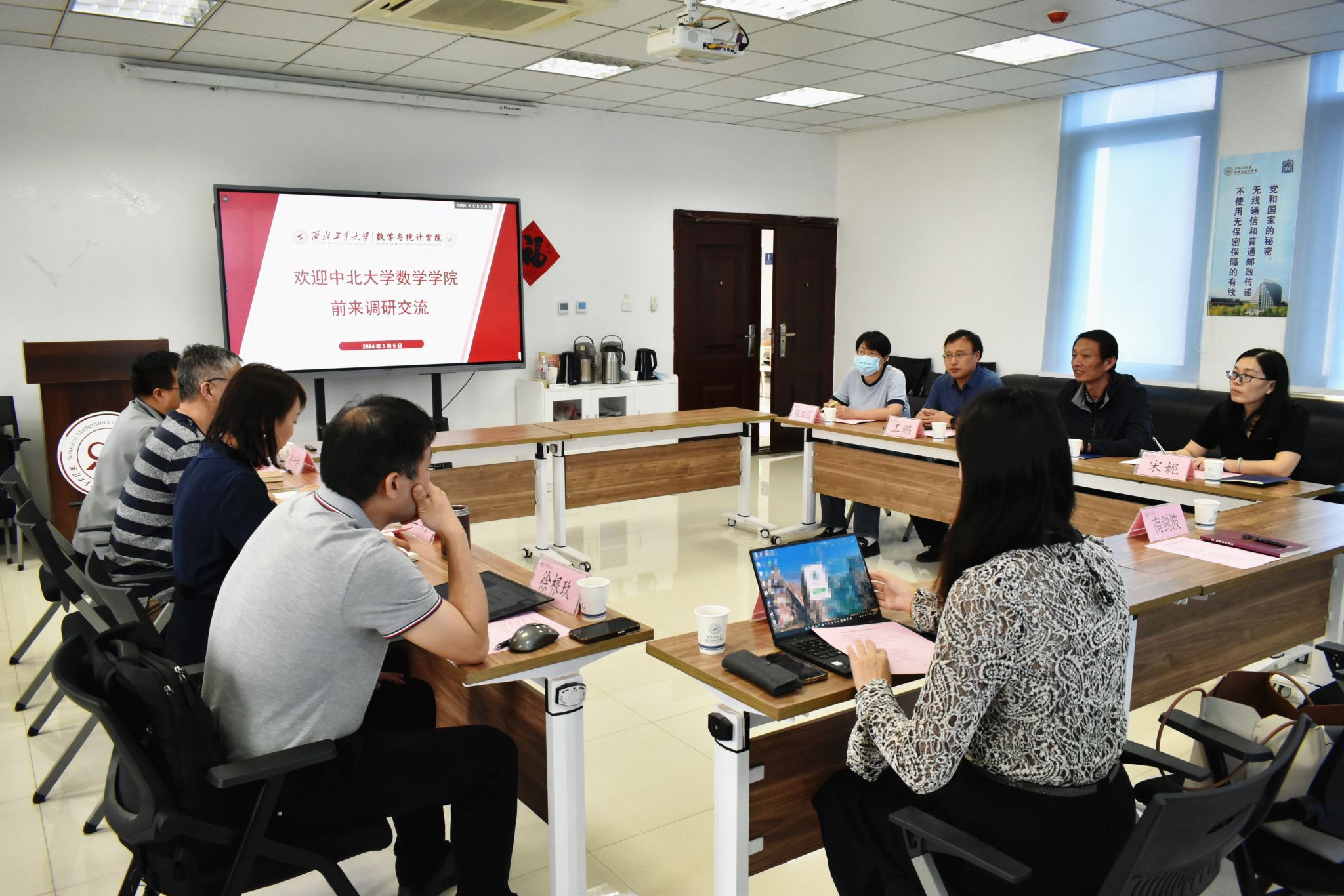 聂玉峰从威尼斯人平台 历史沿革、师资概况、数学拔尖人才和“总师型”人才培养、科学研究、国际合作等方面做了重点介绍,王莉就威尼斯人平台 近几年取得的党建成果分享了工作的开展思路和经验方法。薛亚奎介绍了中北大学数学威尼斯人平台 发展历程、专业建设、师资状况、人才引进等方面的情况。双方围绕党建工作、数学学科建设、人才培养等方面进行了深入细致的交流。