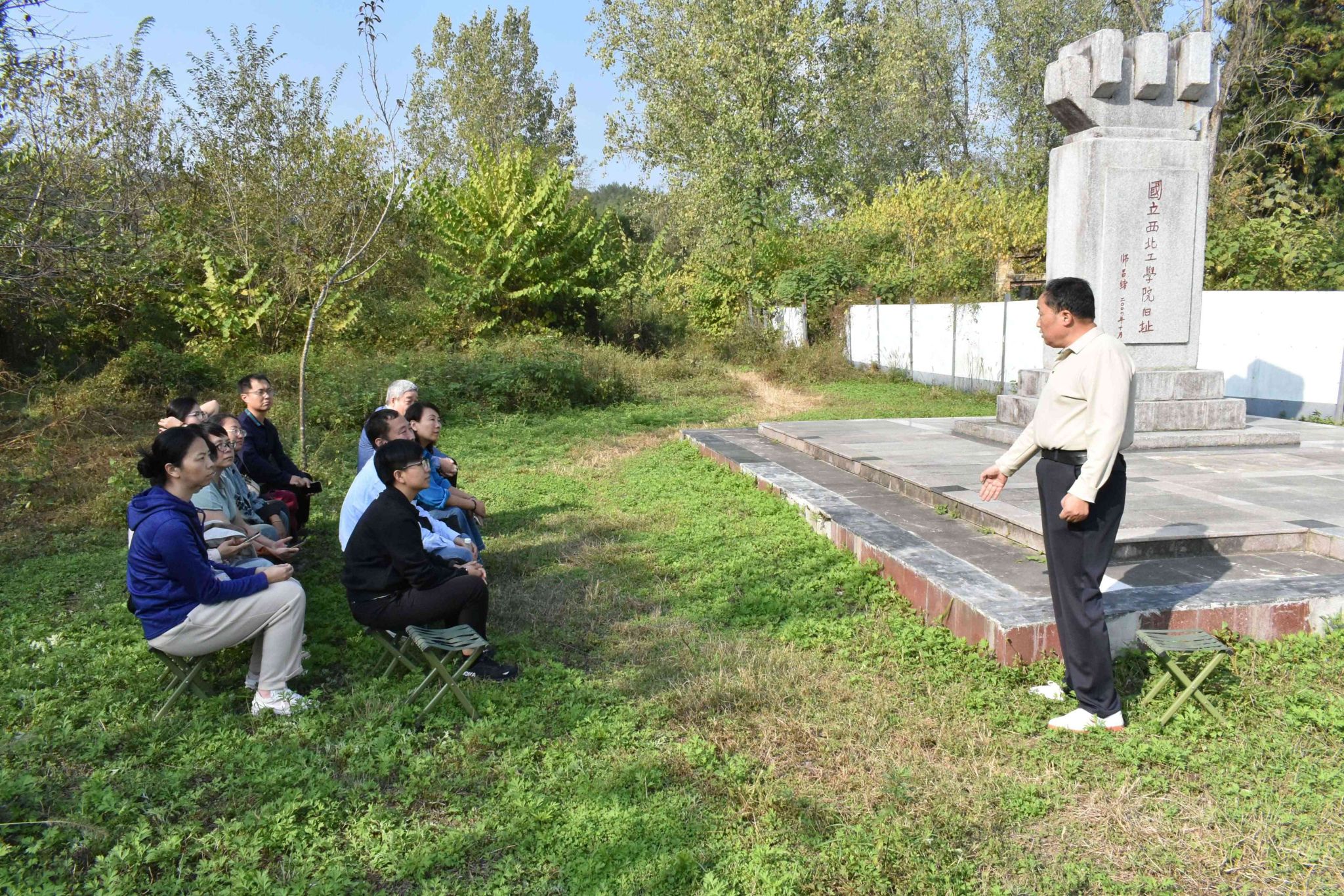 在国立西北工威尼斯人平台 旧址纪念碑前,学员们认真聆听了城固县博物馆原馆长苟保平老师的现场授课,一起重温了西北联大艰苦的创始岁月和发展历程。苟馆长细致生动地讲述了抗日战争时期,诞生于民族危亡之际的国立西北联合大学经历了“自合至分”和“辗转迁徙”的发展轨迹,国立西北工威尼斯人平台 的学子们不畏艰难、刻苦求学的感人事迹。正是凭借着这样的精神与情怀,古路坝先后走出了一千多位毕业生,其中有“中国航天材料之父”师昌绪、清华大学原校长高景德等十余位两院院士。古路坝为我国的抗战胜利和经济社会发展提供了有力的人才支持,“古路坝灯火”激励着西工大人追忆先辈们教育救国的理念与情怀。