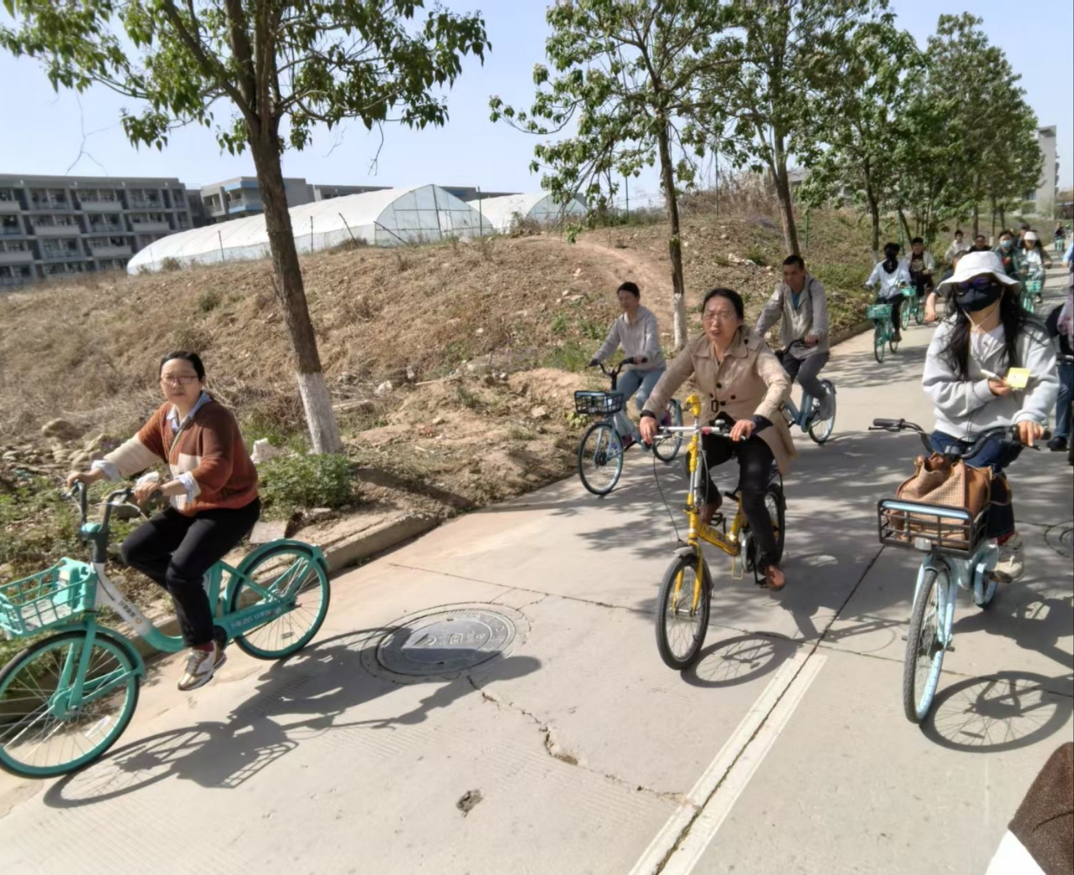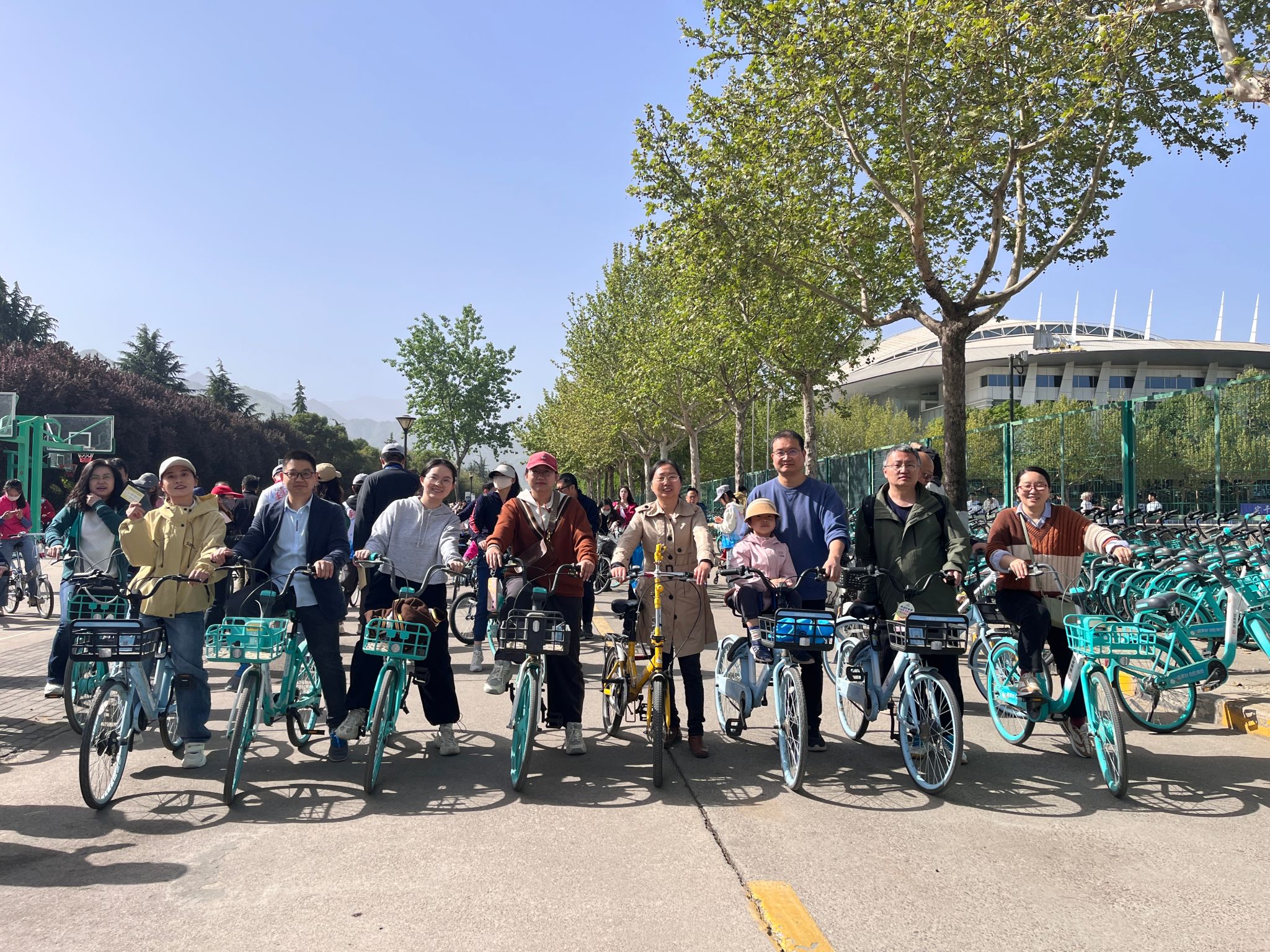 当天早上十点,威尼斯人平台 20余位教职工分批来到集合地点,踏着春风,或单人骑行,或三五成群,或结伴而行,沿着12公里的既定路线,欢歌笑语,一路向前。本次骑行路线途经长安校区多个地标性建筑和景点,如翱翔重点实验室、军工素质博物馆、翱翔极限运动场、海天苑四方阁、南山艺堂以及何尊广场等等。这些建筑不仅展示了学校雄厚的科研实力和卓越的办学成果,也承载着西工大人的奋斗精神和家国情怀,吸引了不少教职工驻足拍照留念。