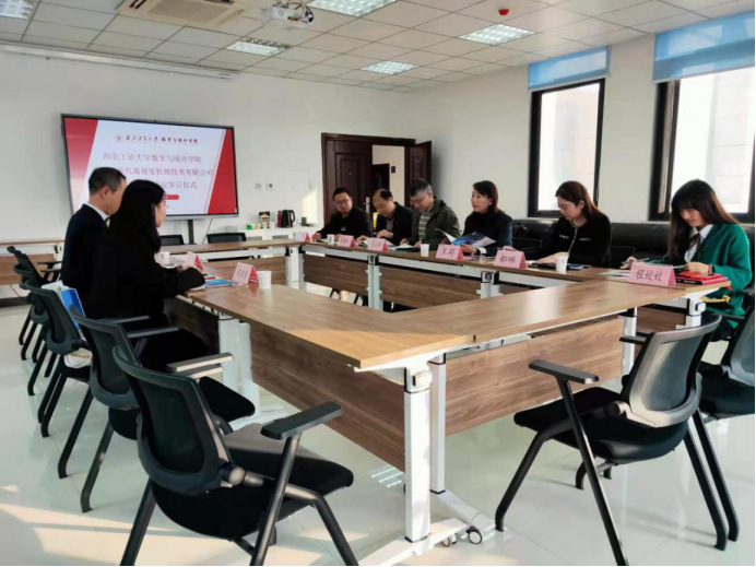 11月2日,威尼斯人平台-威尼斯人娱乐城官网 与西安多维机器视觉检测技术有限公司在长安校区启翔楼357会议室举行产学研合作协议签订仪式。威尼斯人平台 院长聂玉峰、党委书记王莉、副院长都琳、副院长徐根玖、应用概率统计系主任王亮、学工秘书程姣姣,西安多维机器视觉检测技术有限公司总经理宋世刚、技术总监薛丽丽共同参加了本次签订仪式。