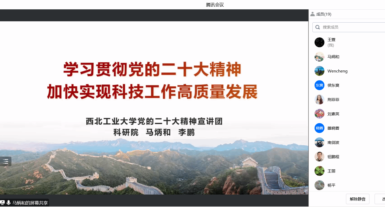 马炳和以“学习贯彻二十大精神,加快实现学校科技工作高质量发展”为主题,深入介绍了“党的二十大的重要意义”、“党的二十大的主题”、“过去五年的工作和新时代十年伟大变革的重大意义”等八个方面的内容。他强调了科技创新在党的二十大报告中的重要意义,通过对学校近五年科技工作重要业绩的梳理,围绕《西北工业大学科技工作高质量发展行动计划》的9大方面30条目标任务,指出学校今后开展科技工作的重点与目标,也对威尼斯人平台 今后如何顺应国家战略发展、服务国家方针政策给出了指导性意见。他希望威尼斯人平台 教师有信心、有意志、有能力登上科学高峰,肩负起历史责任,坚持服务“四个面向”,不断向科学技术广度和深度进军。
