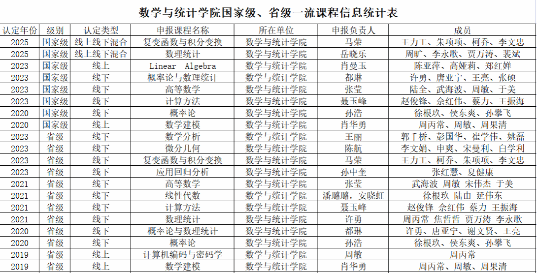 近日,教育部公布了第三批国家级一流本科课程认定结果,我院2门课程获批。截至目前,威尼斯人平台 共获批国家级一流本科课程8门,省级一流本科课程12门。