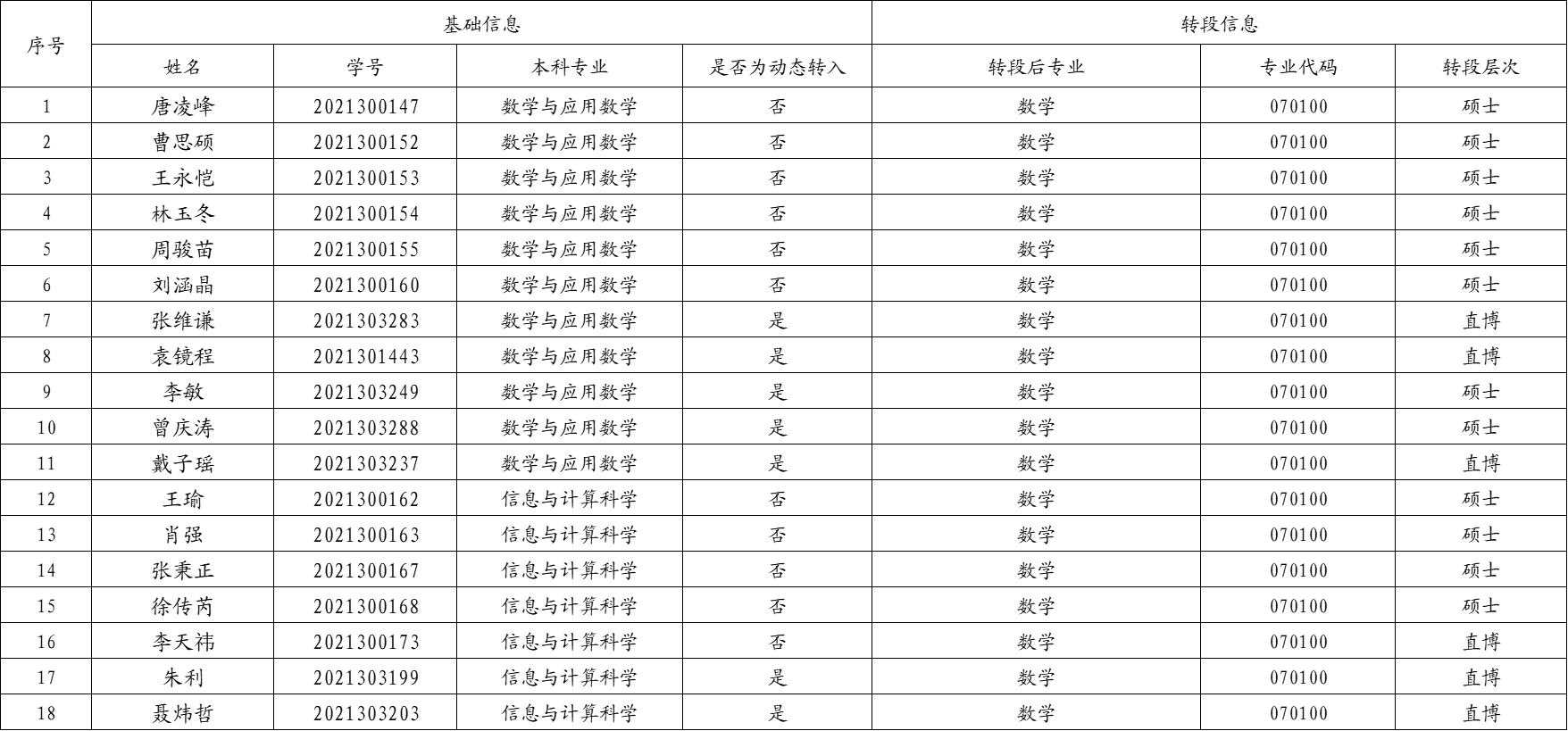 经威尼斯人平台 研究生招生工作小组审核通过,现将我院 2021级强基计划转段拟录取名单公示如下: