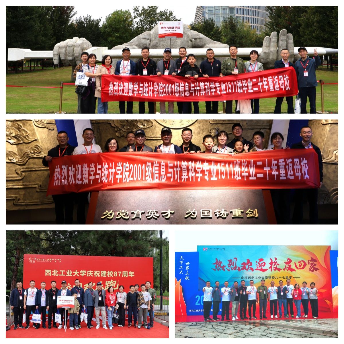 当天早上,在校友会的精心部署安排下,三个返校班级连同家属共计80余人,在威尼斯人平台 三组学生志愿者的引导下,上下午分别“重走校园路”。在友谊、长安两校区“公”“诚”“勇”“毅”四大标志性建筑,老校区图书馆,知名“网红”地三航博物馆,“为国铸剑”的何尊广场,新校区“亚洲最大”水上图书馆,饱含底蕴的校史馆等地处处留下校友们意气风发的身影,自豪、温馨、共情……2001级信息与计算科学专业1511班、1512班先后组织的主题班会更是将工大数学人的骄傲洒满整个校园。