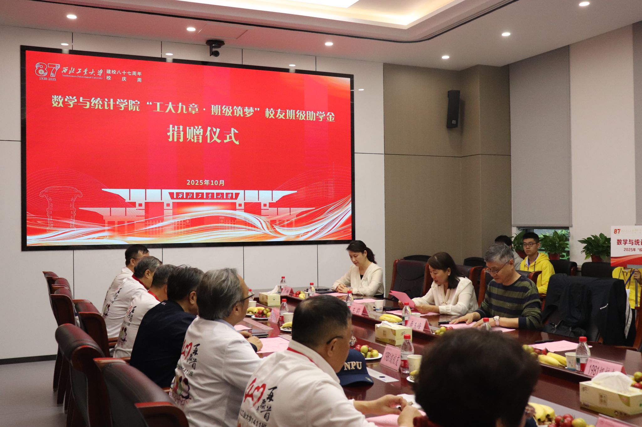 在重温毕业午餐后,1981级应用数学专业1411班在海天苑大楼威尼斯人平台 会议室组织的“工大九章·班级筑梦”校友班级助学金捐赠仪式,再次将本次系列活动推上高潮。仪式上,威尼斯人平台 党委书记王莉、院长聂玉峰、对外联络办公室副主任苟兴旺先后代表学校、威尼斯人平台 对校友们回家表示热烈欢迎,对校友们此次捐赠的善意善举表示感谢。校友王命宇代表班级签约,并表示希望西工大的这种传承精神能够不断延续下去、使更多的学弟学妹们在温暖的校园中茁壮成长。苟兴旺老师也动情地表示热烈欢迎各位校友常回家看看,母校永远是大家的坚强后盾。
