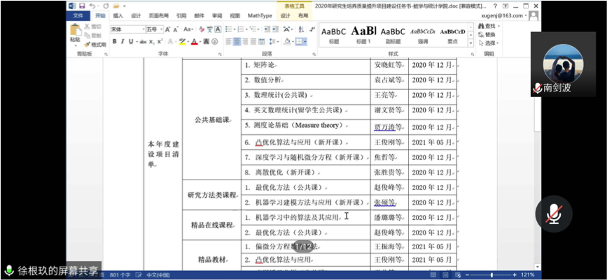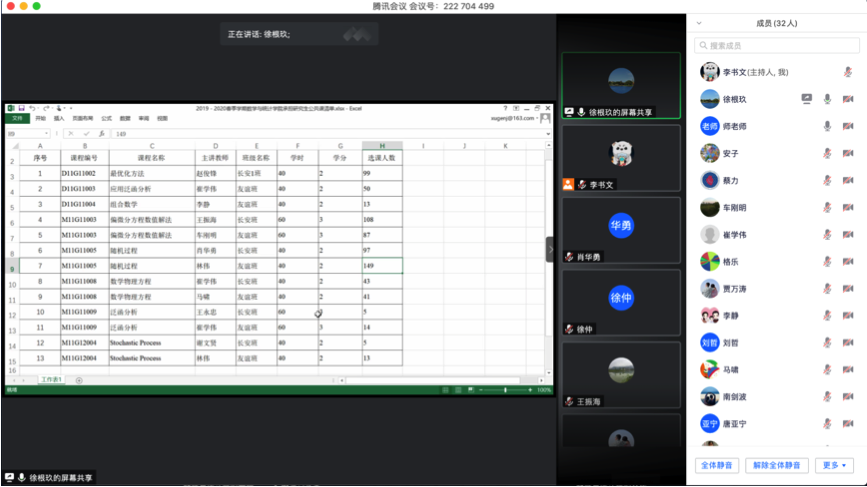 为贯彻落实教育部“在线教学与线下课堂教学质量实质等效”的要求,有效做好学生分批次返校期间线上、线下教学活动的平稳衔接,确保研究生招生规模扩大之后的数学公共课教学质量,规划新形势下研究生公共课的改革发展思路,推进公共课的教学改革,5月29日,威尼斯人平台 通过腾讯会议召开研究生公共课教学改革研讨及研究生培养质量提升项目布置会,威尼斯人平台 院长聂玉峰、副院长徐根玖、主管研究生工作的二级学科负责人、公共课负责人、首席教授及任课教师及研究生培养质量提升项目负责人参加了此次会议,会议由徐根玖主持。