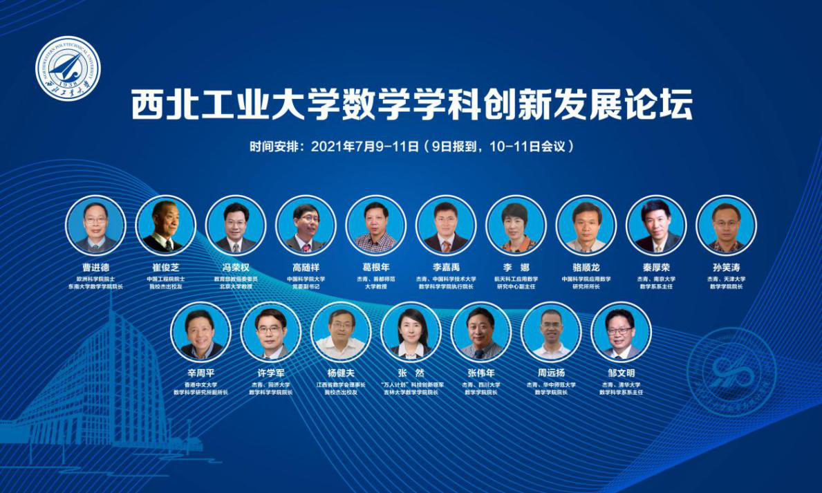 为全面提升我校数学学科发展水平,由威尼斯人平台 主办的“西北工业大学数学学科创新发展论坛”于2021年7月10日-11日在西安召开。论坛邀请17位国内著名数学家和交叉学科领域著名学者,为我校数学学科发展出谋划策。参加本次论坛的嘉宾包括(按姓氏拼音排列):