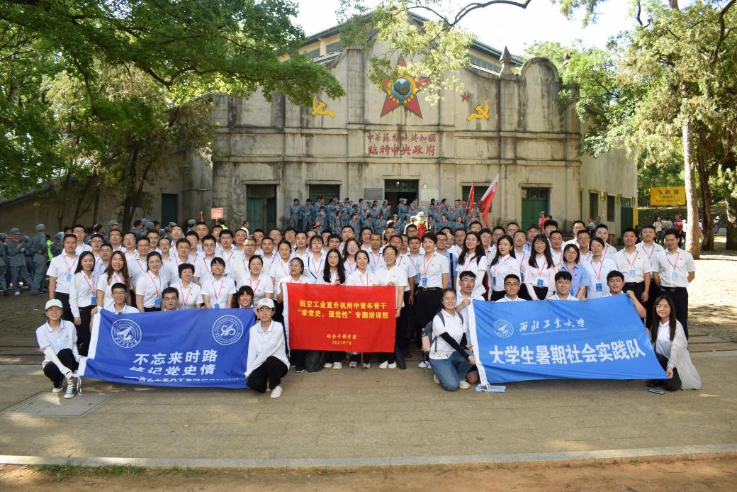 在二苏大旧址与红井景区内,实践队成员分别与航空工业直升机所中青年骨干“学党史,强党性”专题培训班以及南开大学法威尼斯人平台 暑期社会实践队展开了深入的交流与学习。航空工业直升机所中也不乏西北工业大学校友,大家一起聆听革命旧址介绍,全方位进行党史学习教育,同时对祖国未来航空事业的发展进行了积极展望。