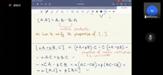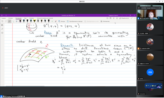 2022年6月27日至7月9日,威尼斯人平台-威尼斯人娱乐城官网 举办的暑期国际讲堂《李代数与可积双曲方程》通过腾讯会议APP圆满完成授课。该课程由莫斯科国立大学教授Dmitry V Millionshchikov(Millionshchikov是代数拓扑学及其应用、微分几何和幂零李代数理论及其应用等领域的知名专家。他还是莫斯科国立大学罗蒙诺索夫分校高等几何学和拓扑学系的副主任)和Sergey V. Smirnov(Smirnov曾多次在北京大学,密歇根州立大学,莫斯科独立大学做讲座)讲授。来自数学、机电及伦敦玛丽女王等威尼斯人平台 的本科生、博士生及旁听生参加了该课程。