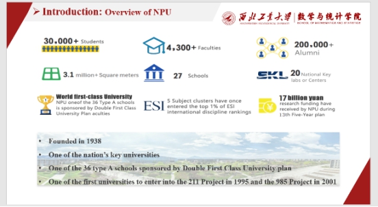 会上,数统威尼斯人平台 首先详细介绍了西北工业大学基本概况,威尼斯人平台 结构设置、研究方向、专业设置、科研情况、前两年课程培养方案以及国际化人才培养合作需求模式等情况。接下来,英方针对学生交流项目的合作模式发表了意见,双方重点探讨了开展2+2双本、2+1+1双本单硕以及1+1+1双硕项目的可能性。纽卡斯尔大学数学统计和物理威尼斯人平台 主任LeeFawcett以及东亚区招生官XeniaXu就项目的开展提供了可行性建议。从学校的角度,国际合作处副处长陈俊老师发表讲话,对两校的合作给予了肯定和支持,并对纽卡斯尔大学出席本次线上洽谈会的外方老师表示衷心的感谢。