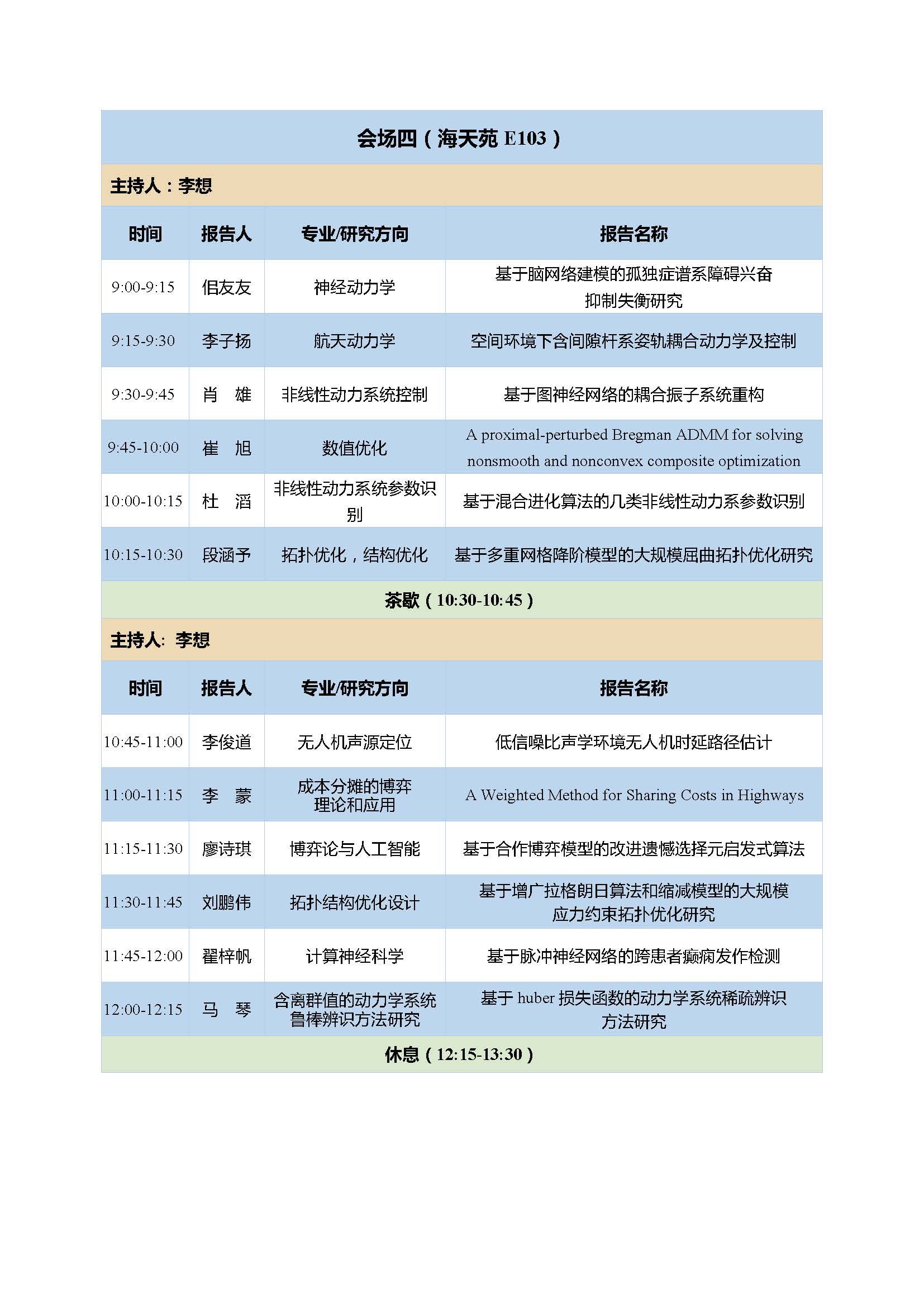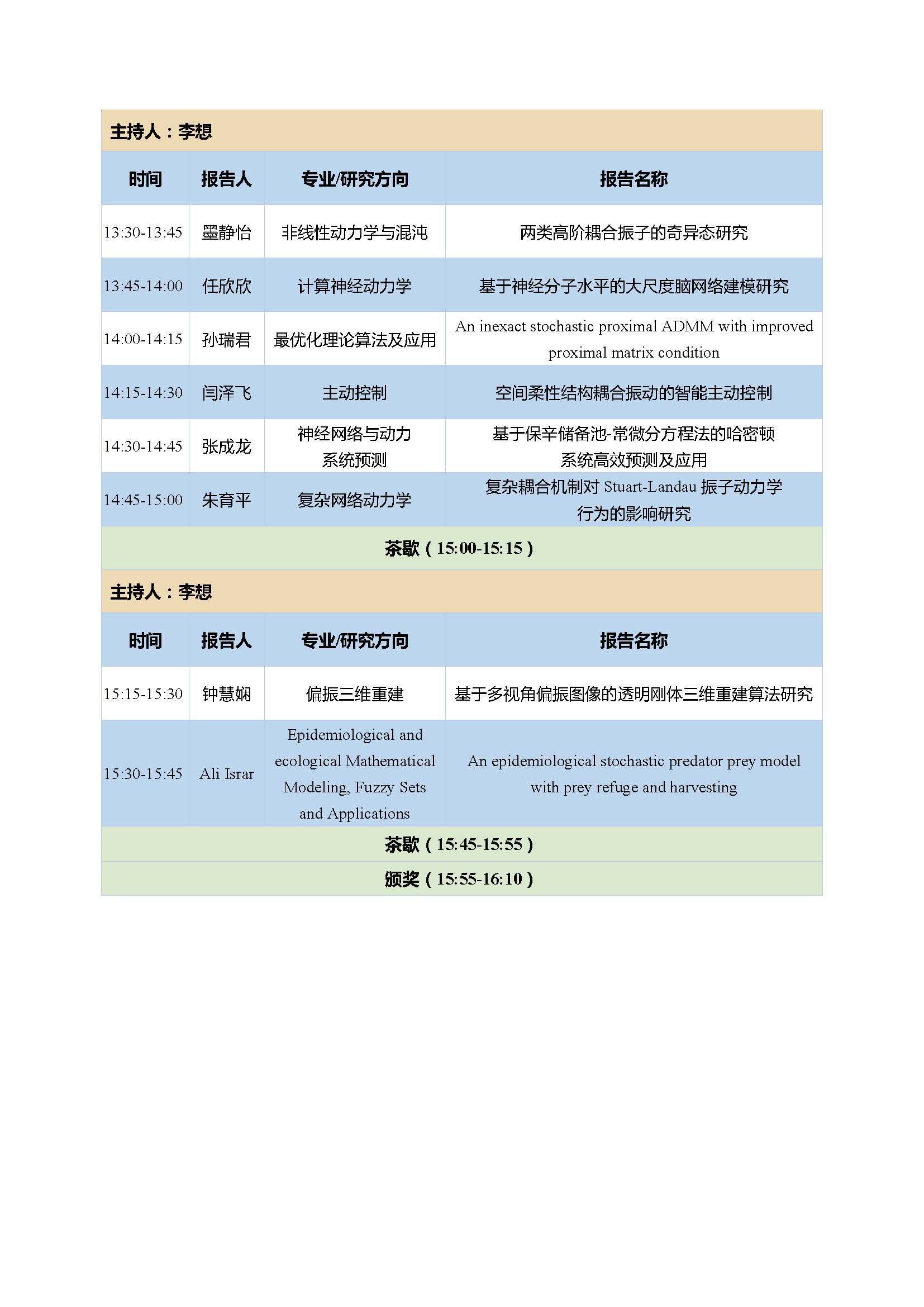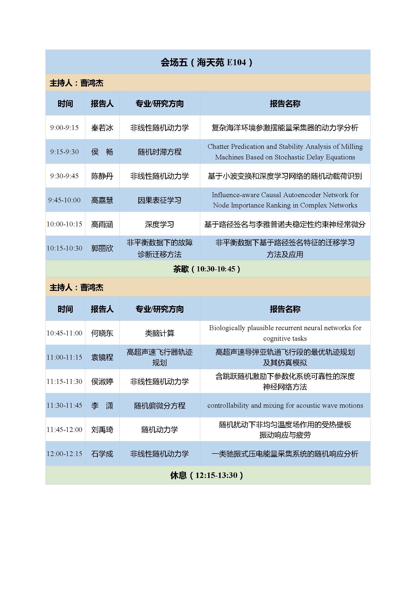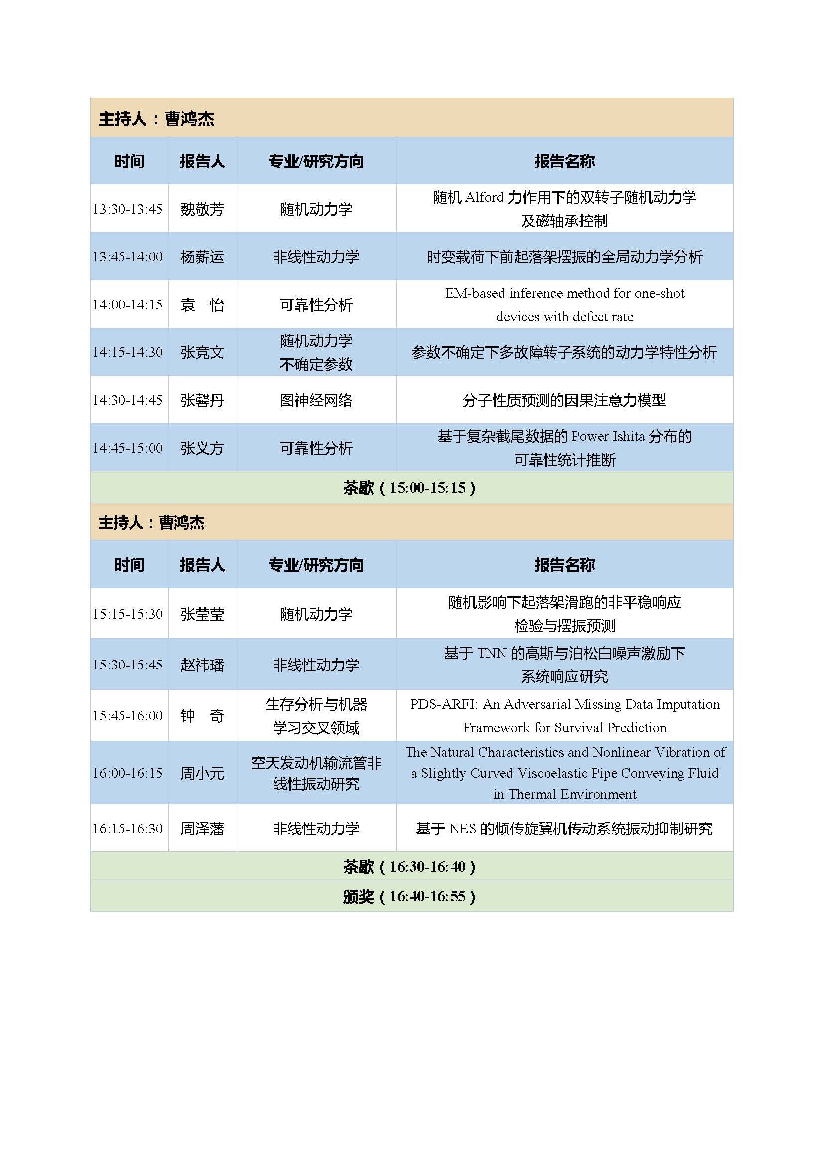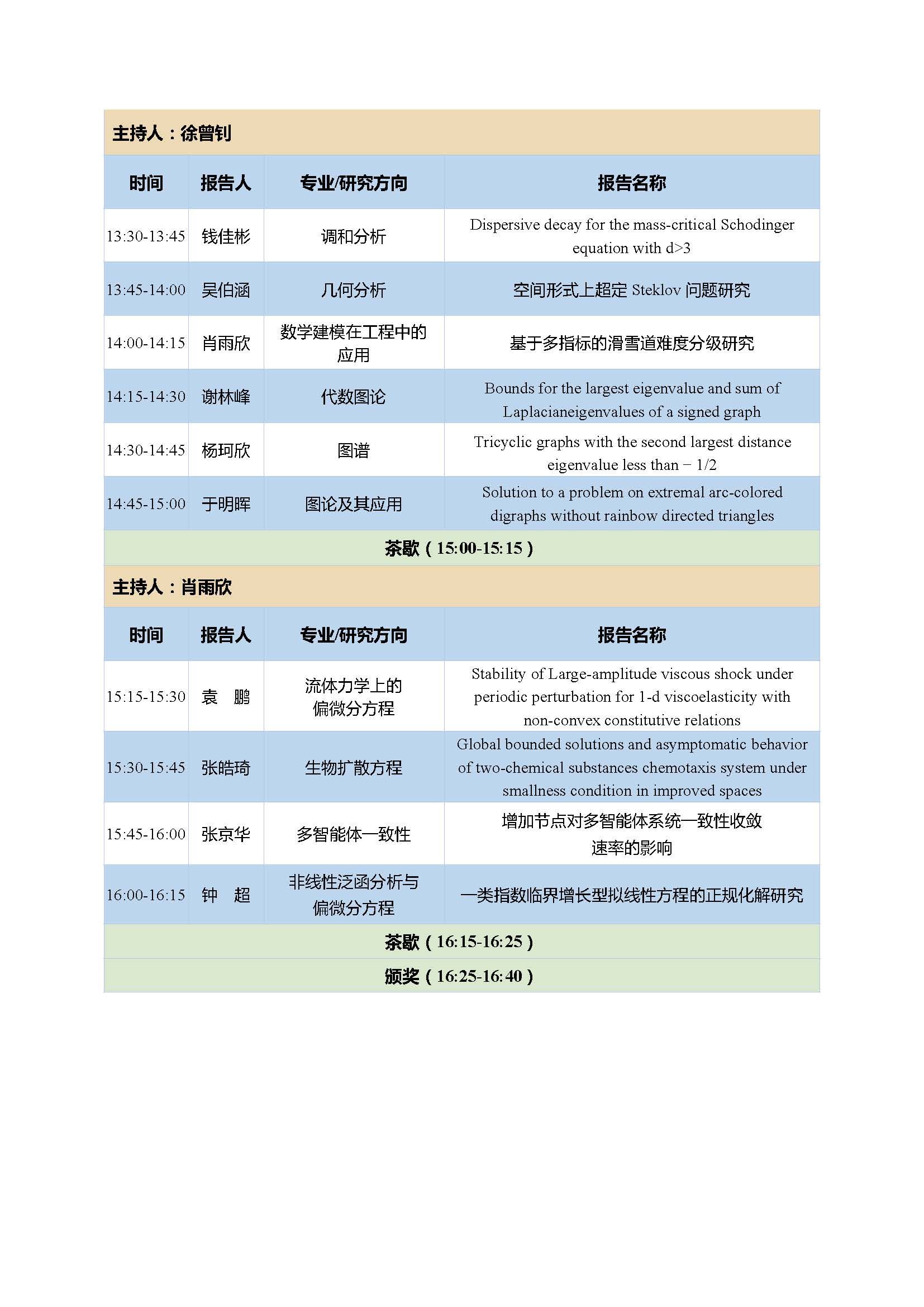 13:30-16:30 | 学生报告 | 五个分会场 | |
