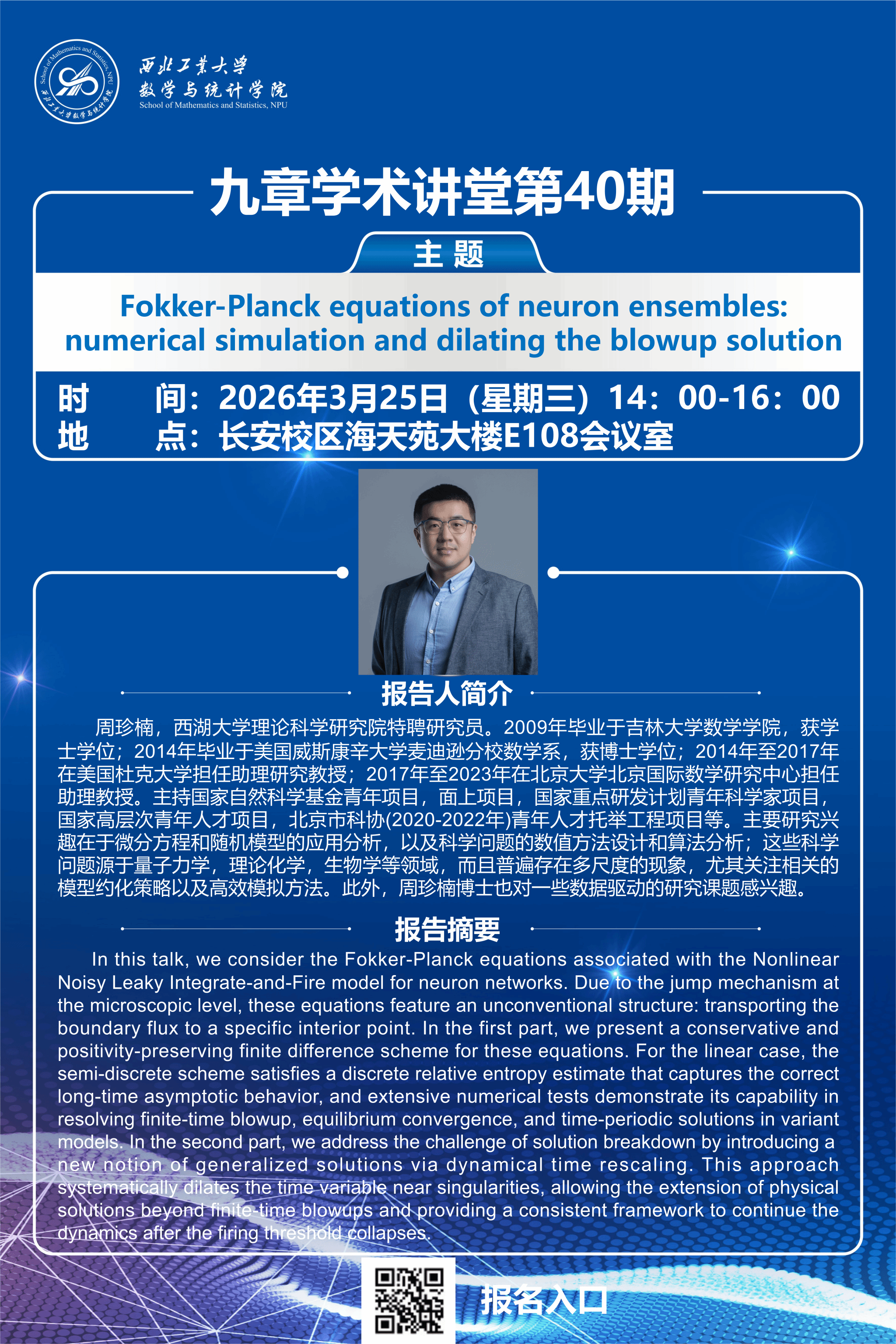【九章学术讲堂第40期】Fokker-Planck equations of neuron ensembles:numerical simulation and dilating the blowup solution