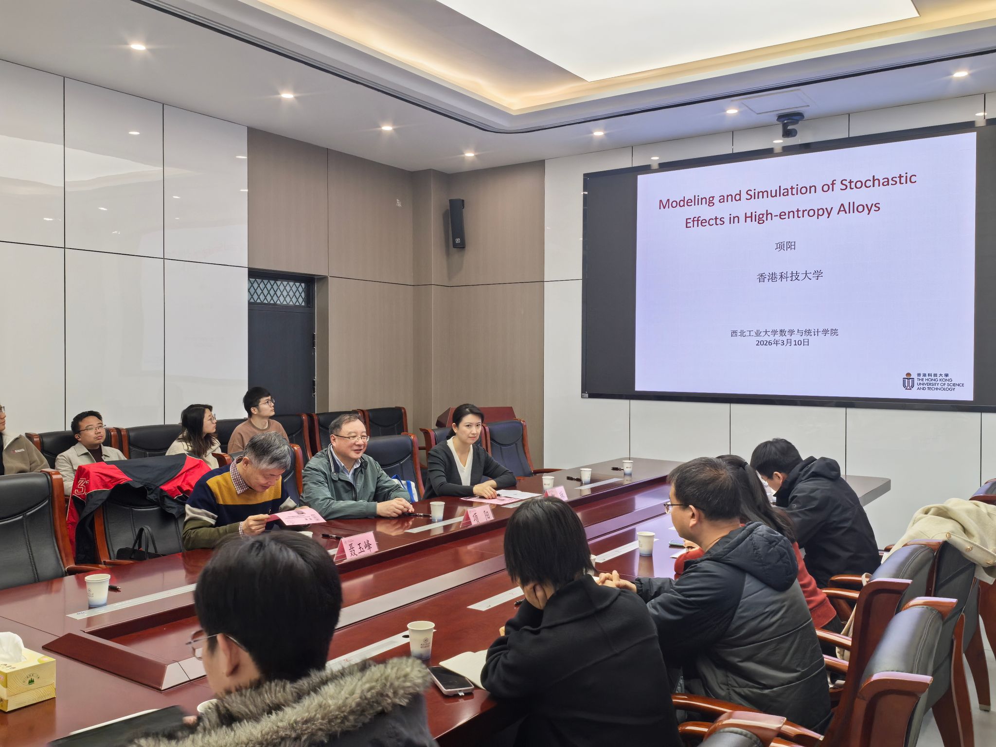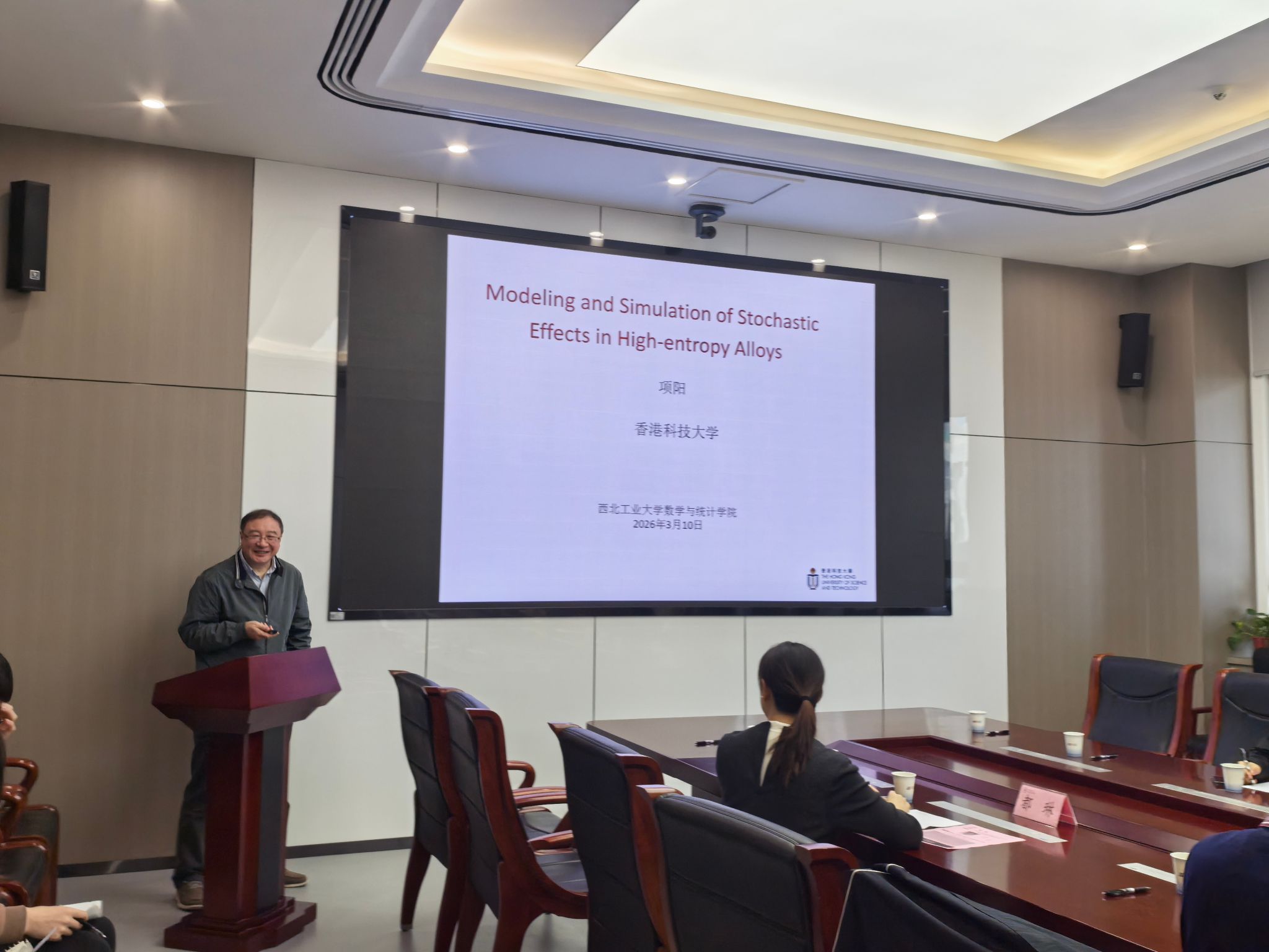 3月11日上午,“翱翔灵犀学术殿堂”第932期在长安校区海天苑大楼E103会议室举行。香港科技大学数学系项阳教授应威尼斯人平台 邀请作题为《Modeling Effects of Randomness in High Entropy Alloys》的学术报告。威尼斯人平台 院长聂玉峰教授、副院长都琳教授等20余位师生参会,报告由聂玉峰主持。