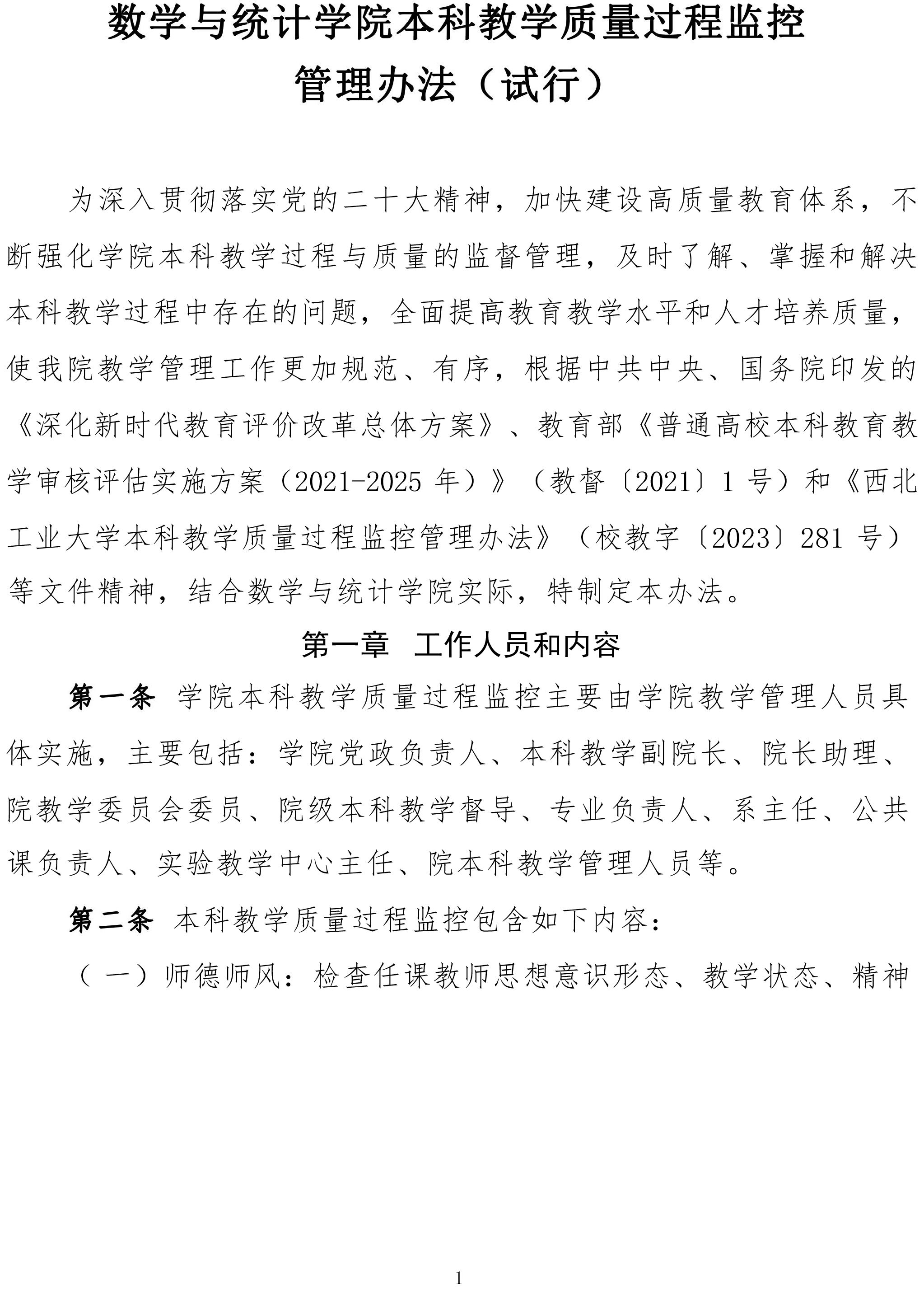 威尼斯人平台 本科教学质量过程监控管理办法(试行)