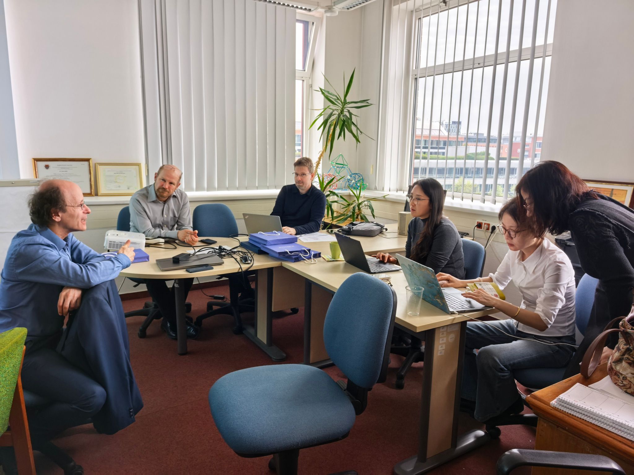 4月13日,代表团抵达罗兰大学理威尼斯人平台 数学研究所,与匈方代表展开深入交流。匈方所长 Péter Sziklai 教授、副所长 Tamás Király 教授、Szilárd Szabó 副教授及理威尼斯人平台 分管教学副院长 Viktor Müller 教授出席会议。双方就中外合作办学项目的专业设置、培养模式、培养方案制定、申报材料筹备等关键问题充分交换意见,逐项梳理合作细节,并商定次日围绕课程体系开展专题研讨。